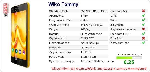 Dane telefonu Wiko Tommy na Twojej stronie