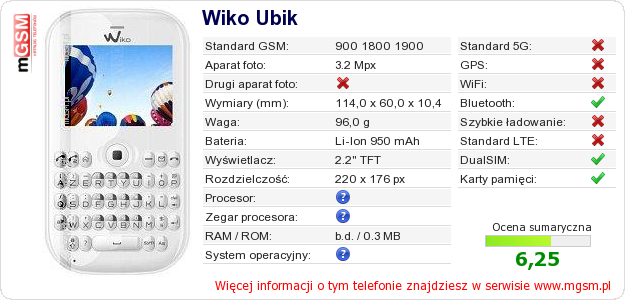 Dane telefonu Wiko Ubik na Twojej stronie