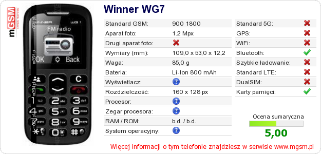 Dane telefonu Winner WG7 na Twojej stronie