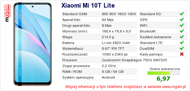 Dane telefonu Xiaomi Mi 10T Lite na Twojej stronie