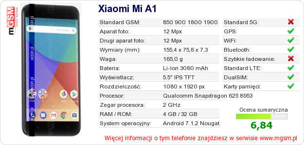 Dane telefonu Xiaomi Mi A1 na Twojej stronie