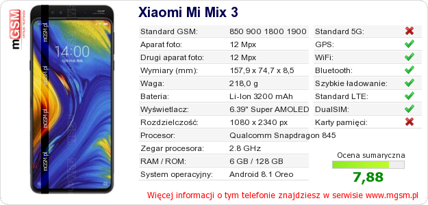 Dane telefonu Xiaomi Mi Mix 3 na Twojej stronie
