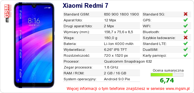 Dane telefonu Xiaomi Redmi 7 na Twojej stronie