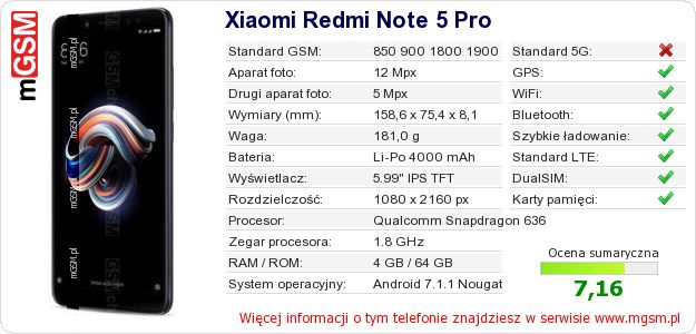 Dane telefonu Xiaomi Redmi Note 5 Pro na Twojej stronie