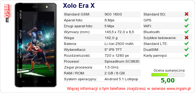 Dane telefonu Xolo Era X na Twojej stronie