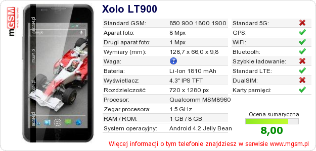 Dane telefonu Xolo LT900 na Twojej stronie
