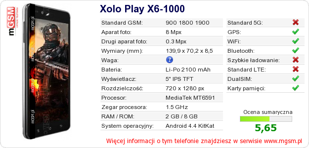 Dane telefonu Xolo Play X6-1000 na Twojej stronie