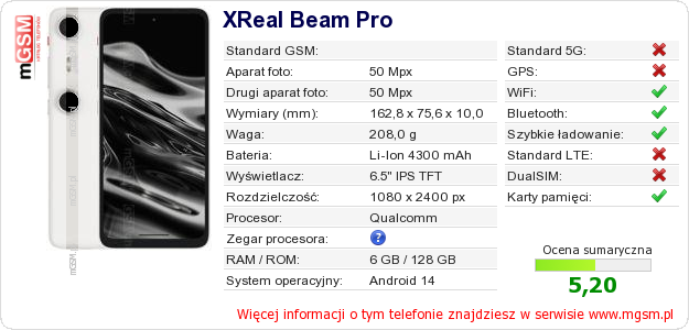 Dane telefonu XReal Beam Pro na Twojej stronie