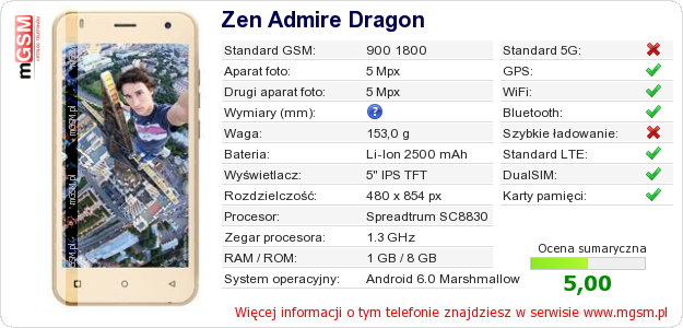 Dane telefonu Zen Admire Dragon na Twojej stronie