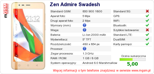 Dane telefonu Zen Admire Swadesh na Twojej stronie