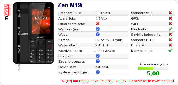 Dane telefonu Zen M19i na Twojej stronie