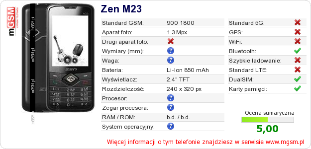 Dane telefonu Zen M23 na Twojej stronie