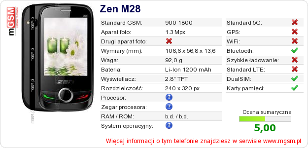 Dane telefonu Zen M28 na Twojej stronie