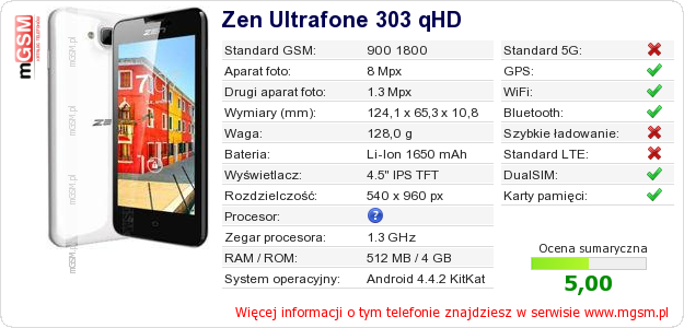 Dane telefonu Zen Ultrafone 303 qHD na Twojej stronie