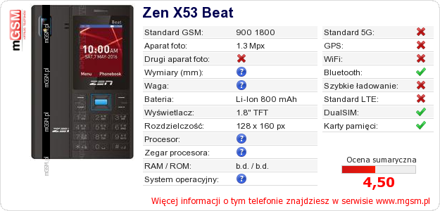 Dane telefonu Zen X53 Beat na Twojej stronie
