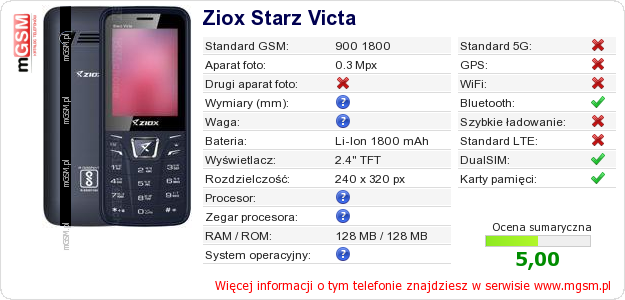 Dane telefonu Ziox Starz Victa na Twojej stronie
