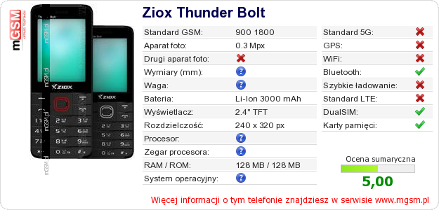 Dane telefonu Ziox Thunder Bolt na Twojej stronie