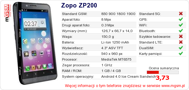 Dane telefonu Zopo ZP200 na Twojej stronie