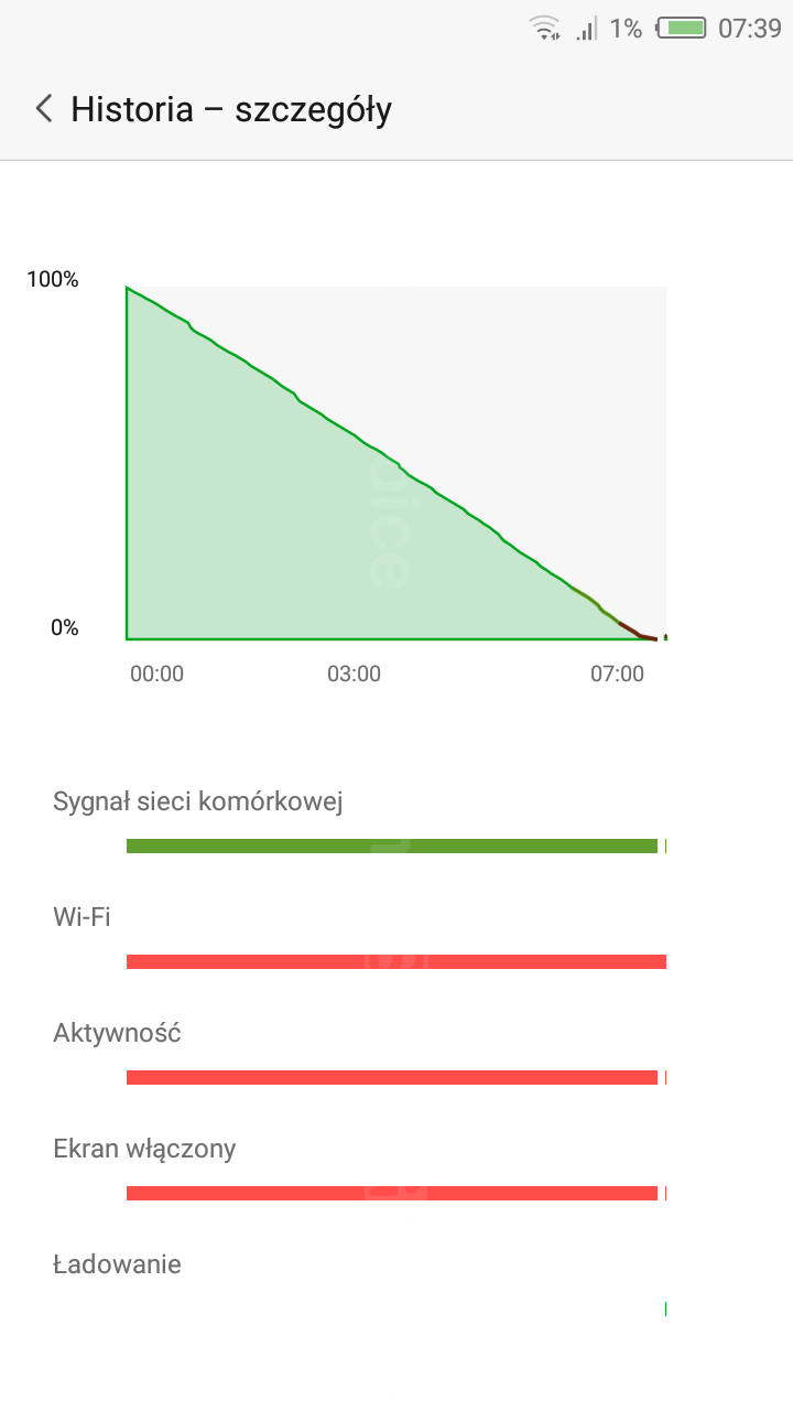 - godzina oglądania filmu z pamięci telefonu (tryb samolotowy, 50% jasności ekranu) - ubytek o 7-8%;